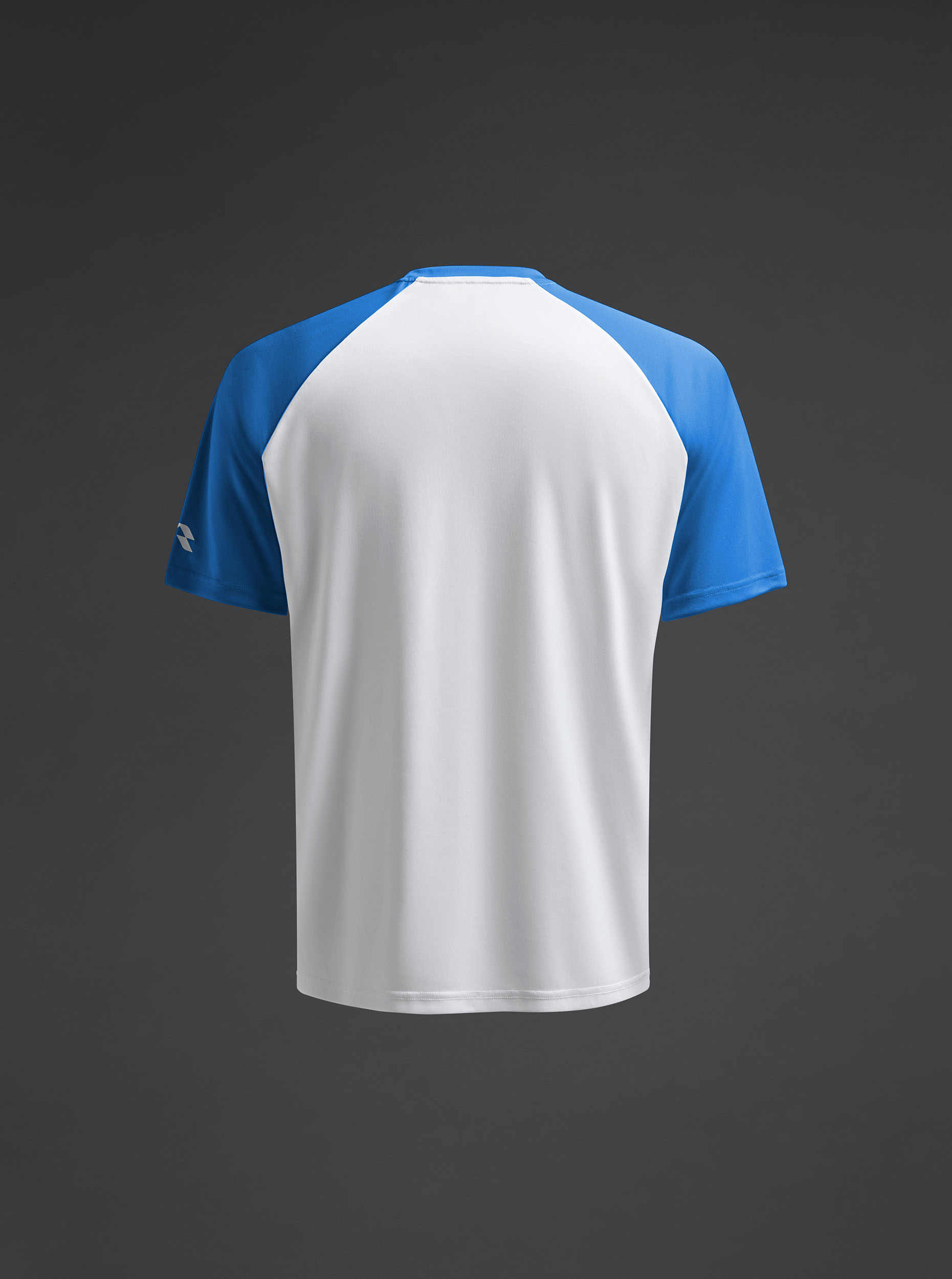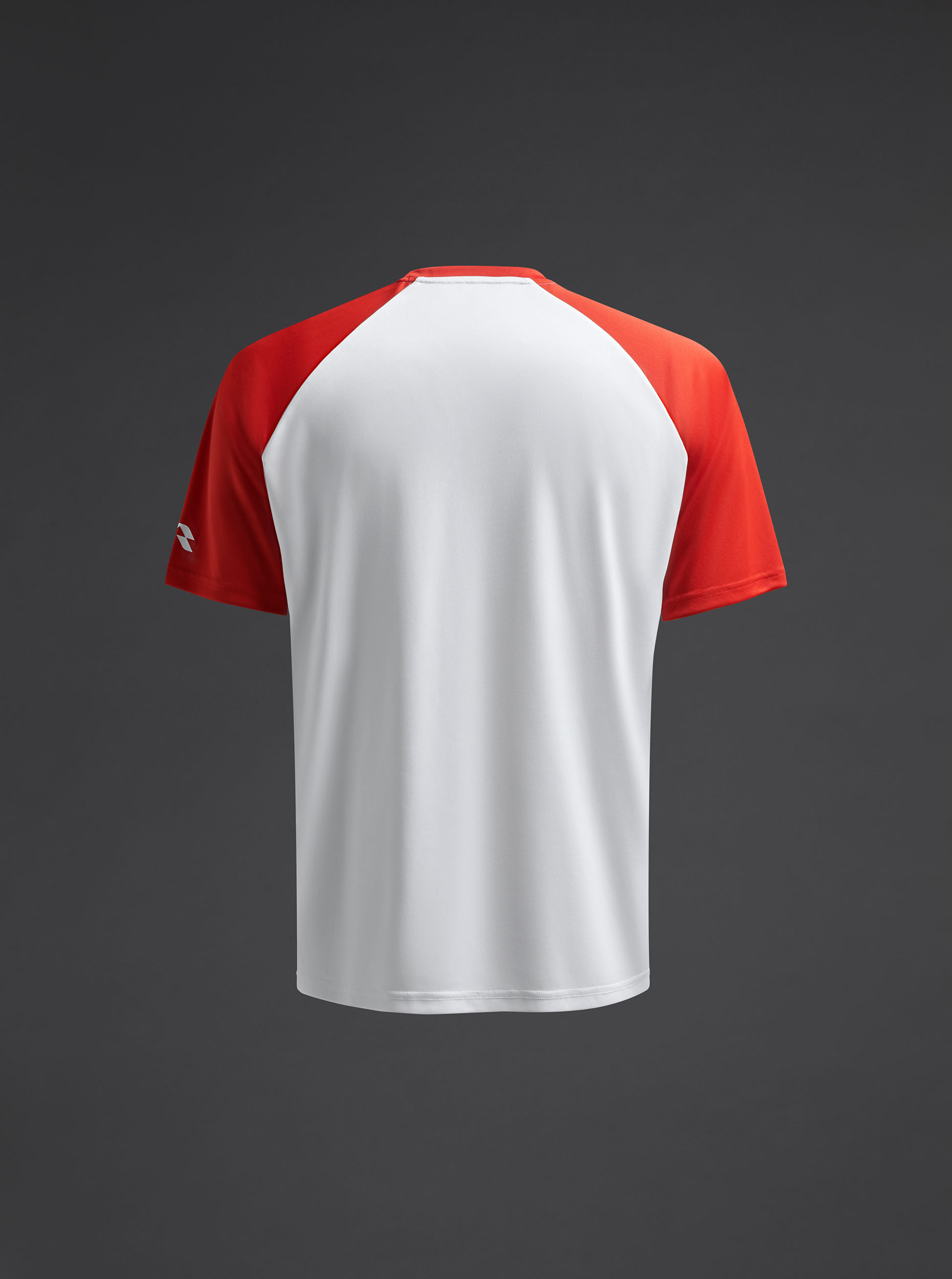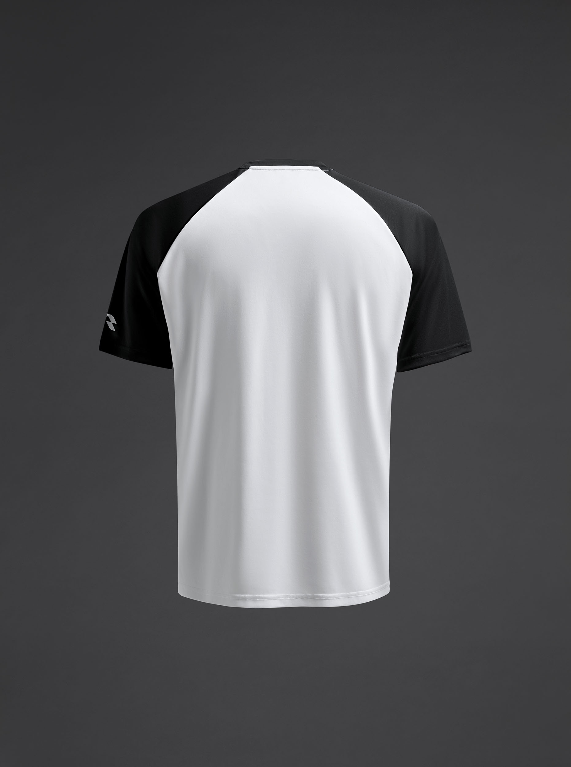 Camiseta técnica unisex de manga corta ranglán en poliéster reciclado. Diseño bicolor. · Wicking. · Breathable.