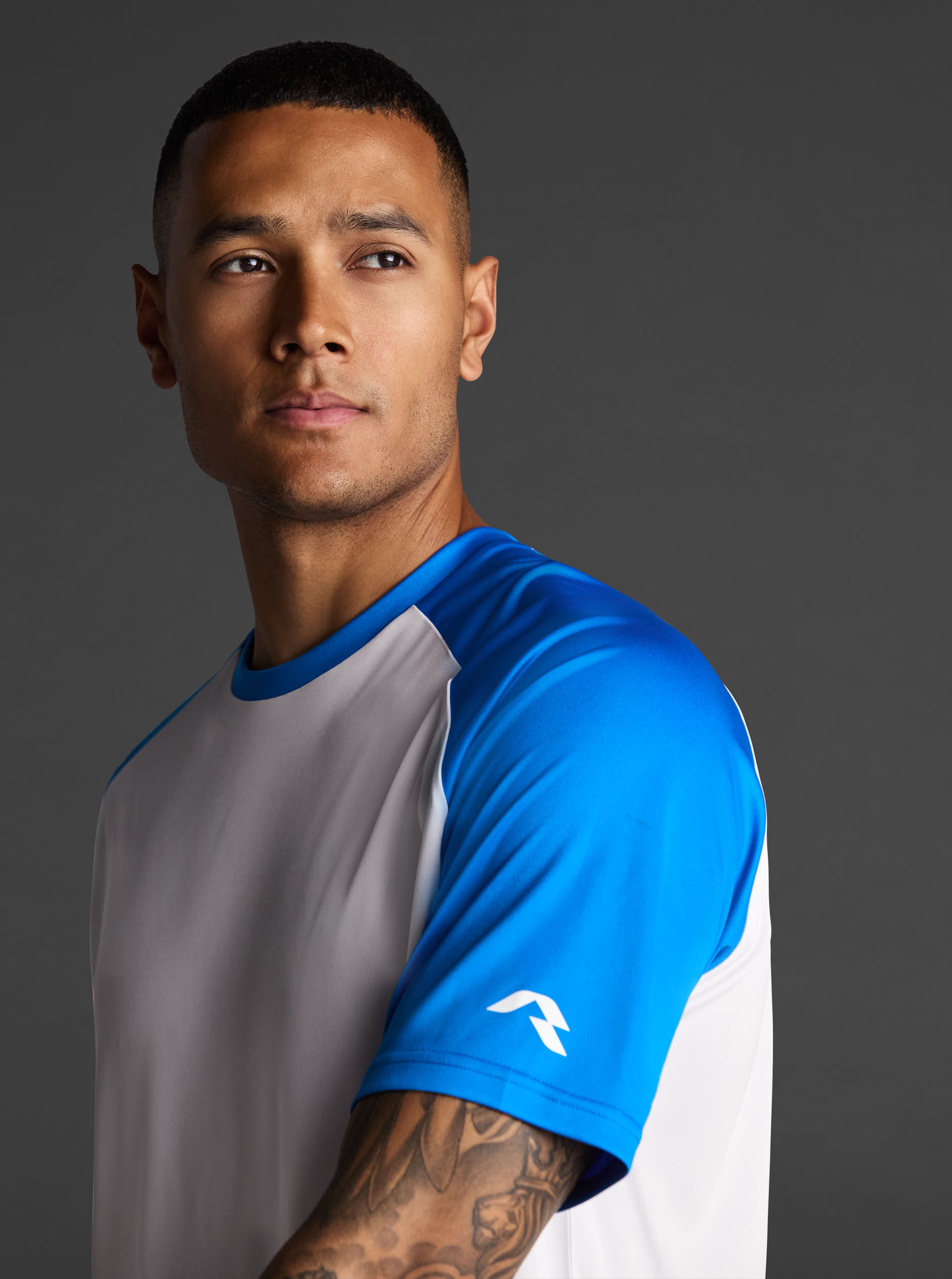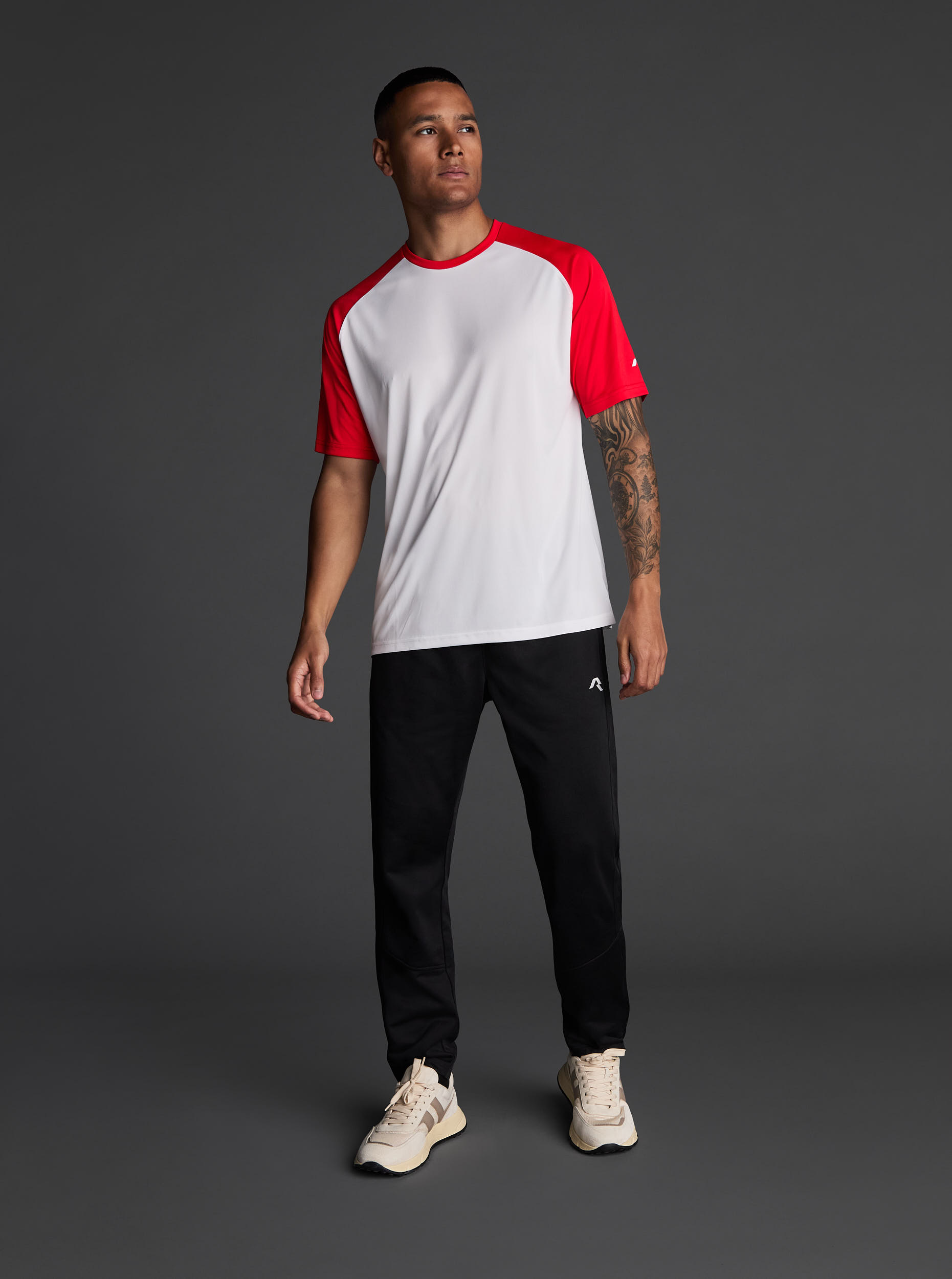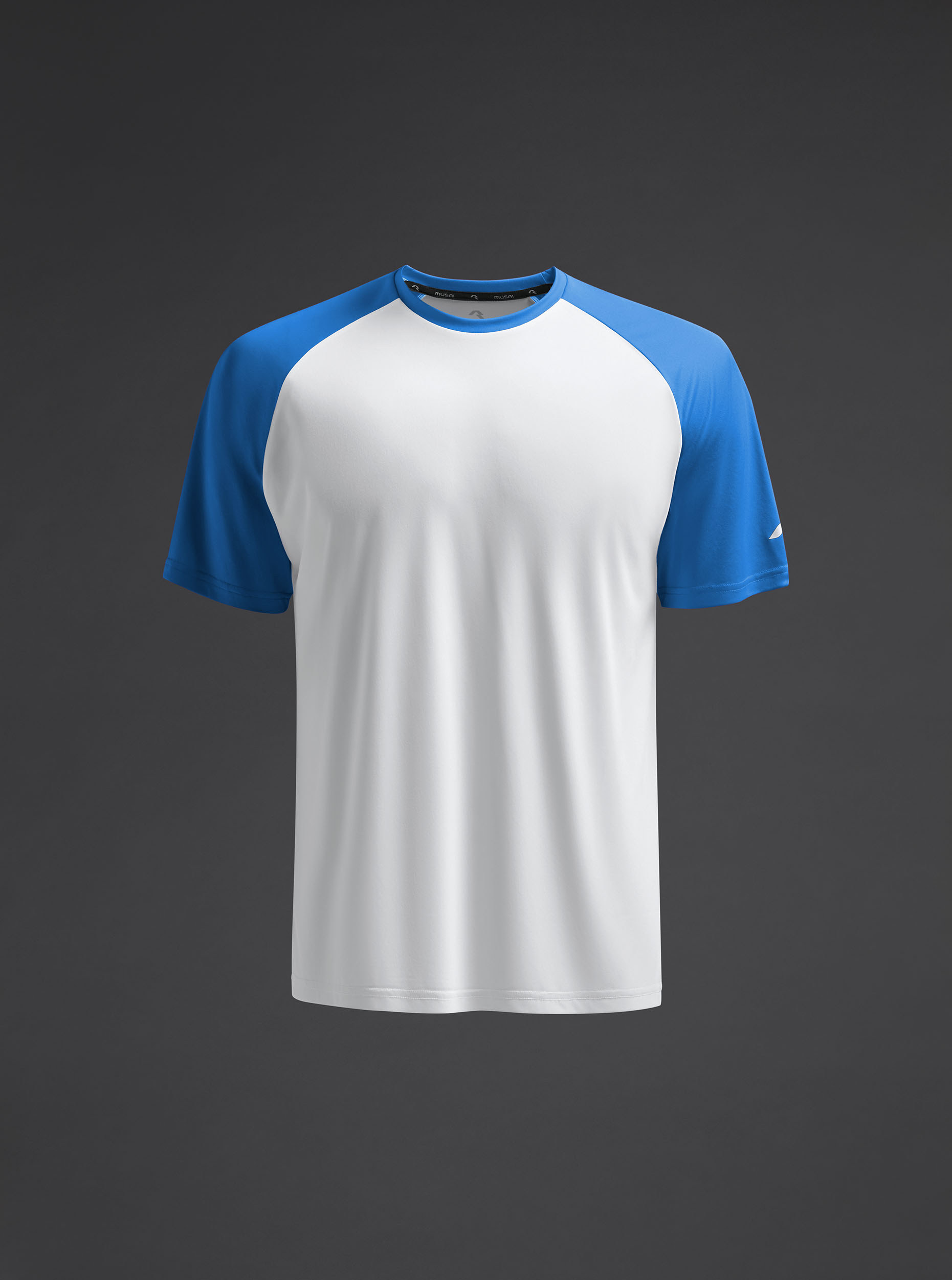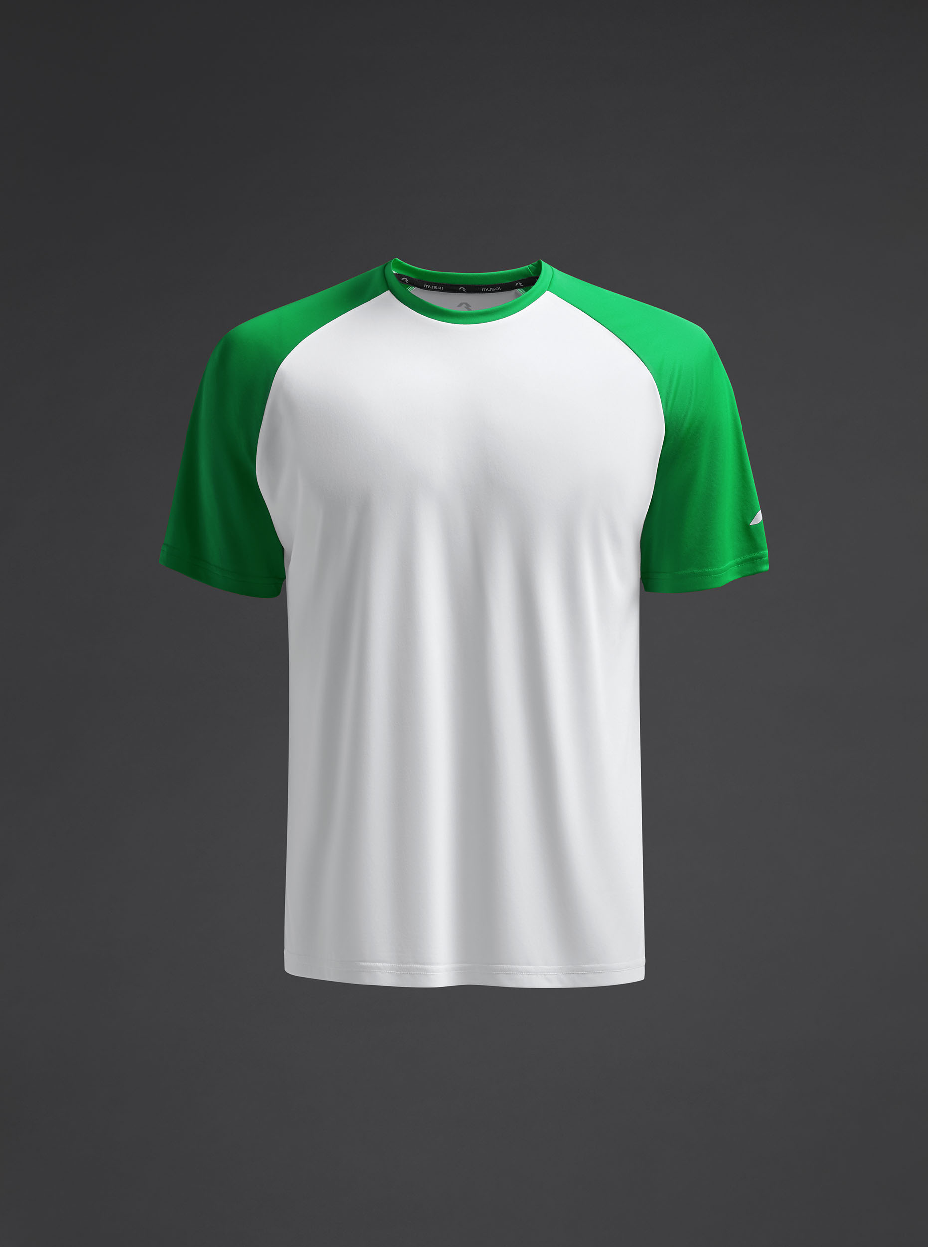 Camiseta técnica unisex de manga corta ranglán en poliéster reciclado. Diseño bicolor. · Wicking. · Breathable.