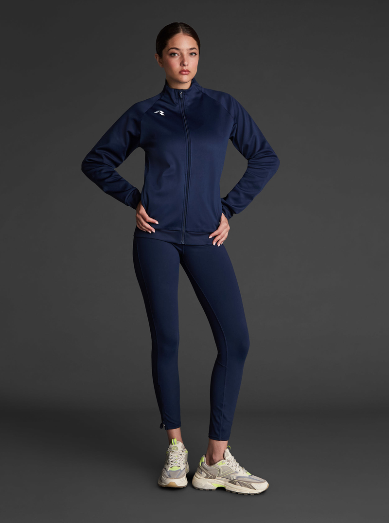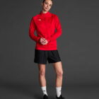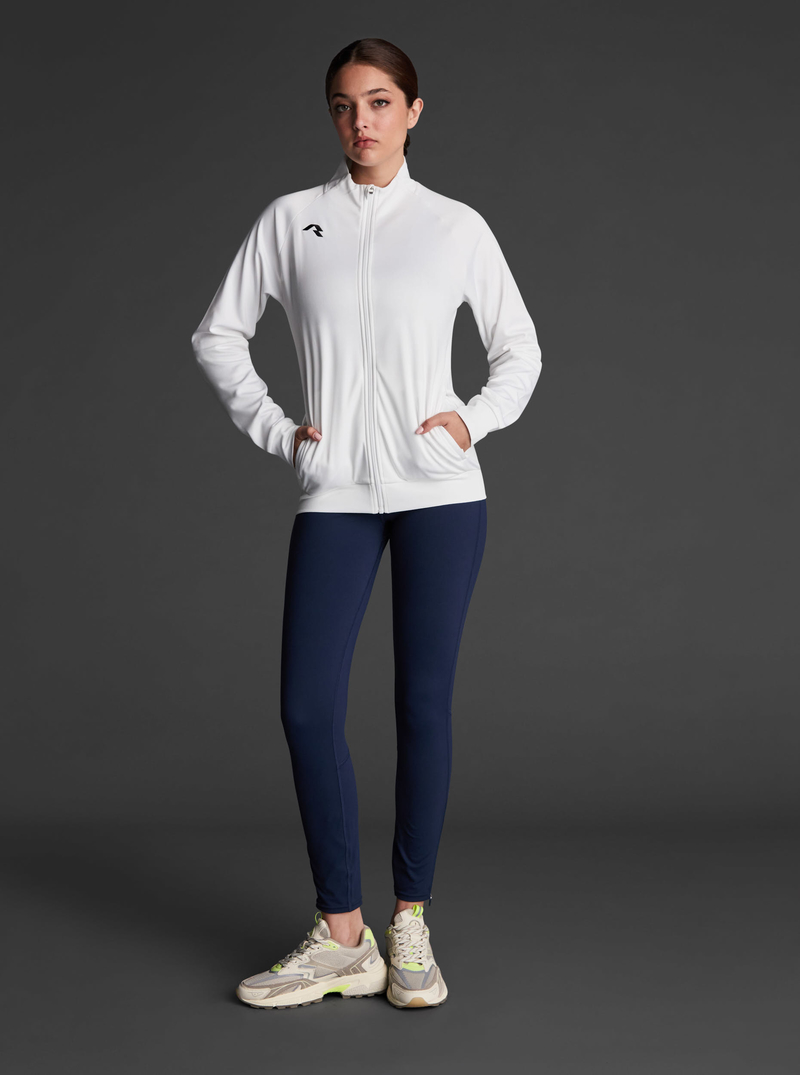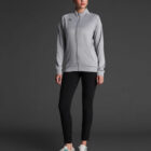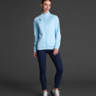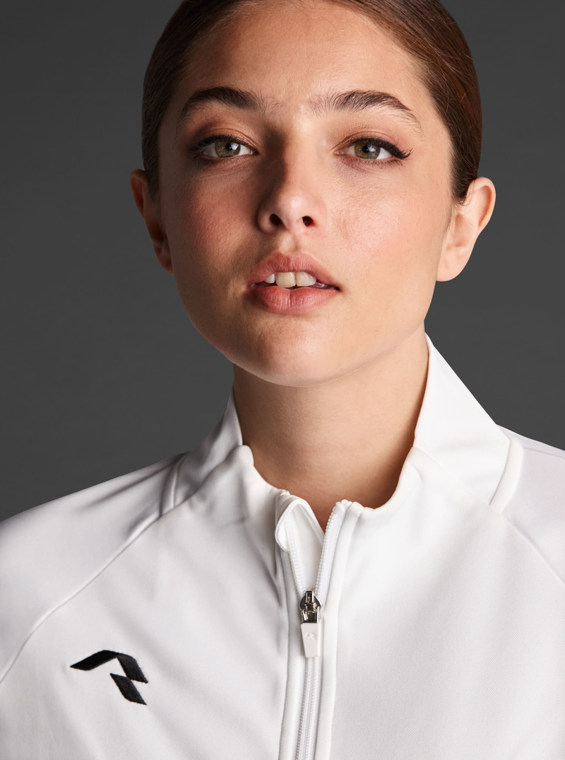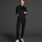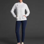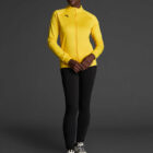 · Parte frontal del cuello integrada al delantero en una sola pieza; mitad trasera en canalé 1×1.