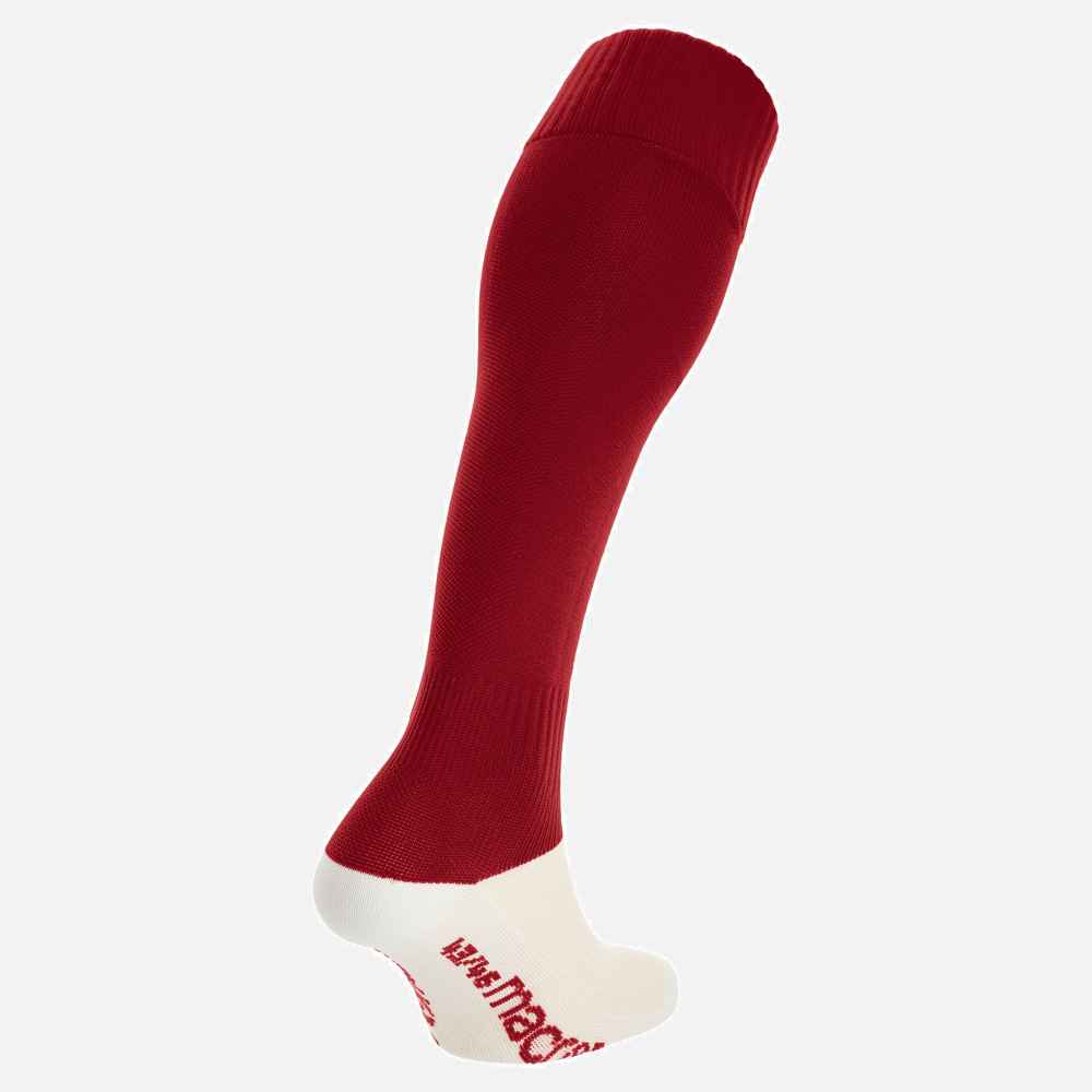 Medias de competición con cómoda banda superior de canalé vuelta. La pernera está confeccionada en poliéster y elastano y su forma facilita la colocación de espinilleras. El talón y la puntera están cosidos con hilos resistentes al desgaste. El pie es de algodón elástico con una banda envolvente de elastano con compresión graduada. Disponible en 12 variantes de color.