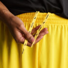 · Cinturilla elástica con cordón interior a tono personalizado con diseño de marca.